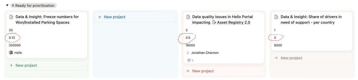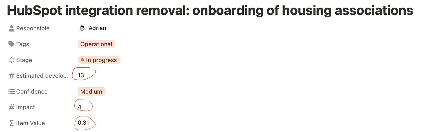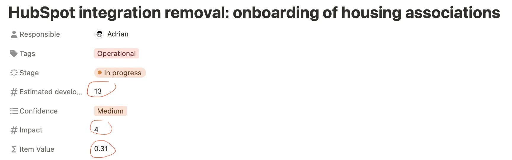 It’s true that in this model, long-term high-impact items often look less attractive when compared purely on value-per-day. To handle this, we break big strategic bets into smaller, deliverable chunks. We also give impacts 8 and above a 1.5x boost. This approach not only makes the work easier to prioritize alongside shorter items but also brings tangible progress faster. The company benefits from earlier impact, and the team benefits from clear milestones that keep morale high.
